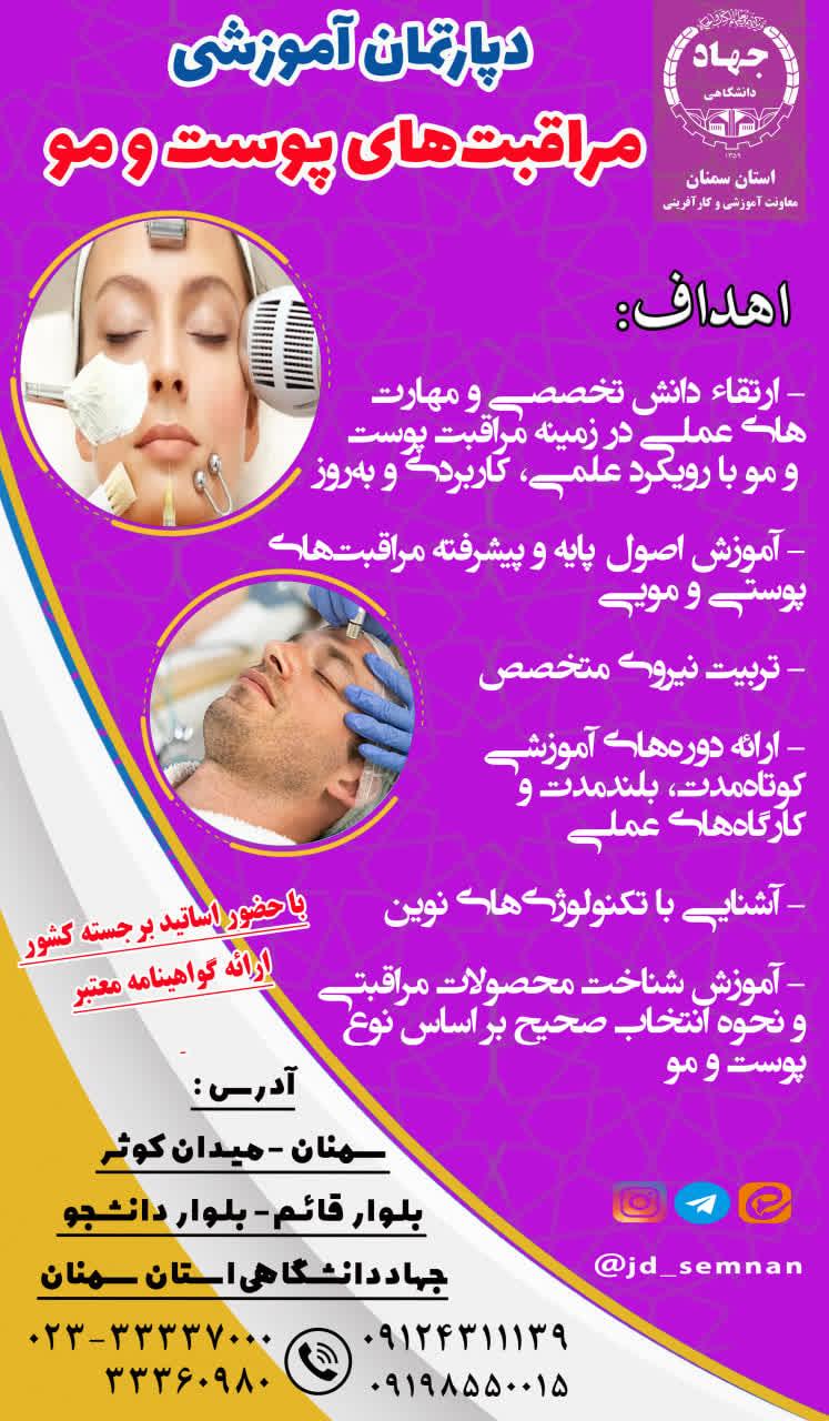 ارتقاء دانش تخصصی و مهارتهای عملی در زمینه مراقبت پوست و مو با رویکرد علمی، کاربردی و بهروز