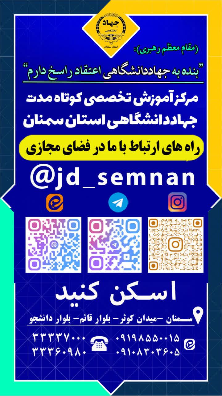 راه های ارتباط با مرکز آموزش تخصصی کوتاه مدت جهاد دانشگاهی استان سمنان در فضای مجازی