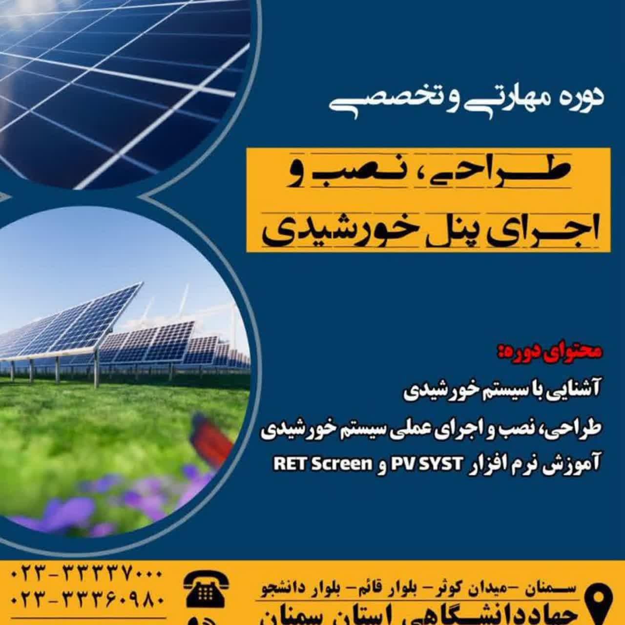 دوره مهارتی و تخصصی طراحی، نصب و اجرای پنل خورشیدی در مرکز آموزش تخصصی جهاددانشگاهی استان سمنان